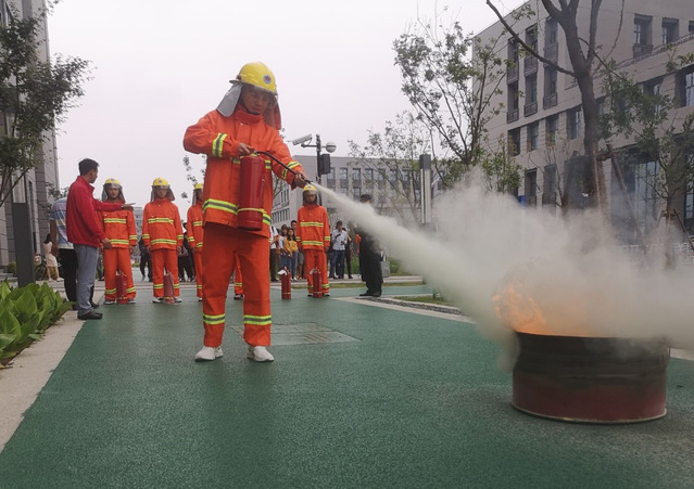 学校消防专员现场给师生们讲解了灭火器的使用方法,并组织了几位学生使用灭火器进行了灭火演习。演习结束后总指挥毕忠勤总结发言,提醒各位师生一定要增强安全防范意识,也希望大家能够通过此次的演练提高突发情况下的应急反应和自救能力。
