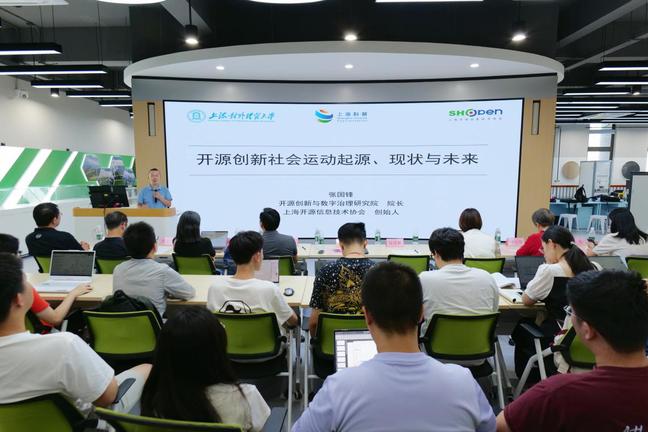 9月12日,计算机学院博达讲坛邀请上海开源信息技术协会秘书长,上海对外经贸大学开源创新与数字治理研究院院长张国锋开展《开源创新社会运动历史、现状与未来》讲座。上海道客网络科技有限公司首席运营官张红兵、技术总监李越、技术专家石勇军、赵燕宁,人力资源总监张倩倩应邀参加。院常务副院长张传林、党委副书记齐永晓、教学秘书徐曼、计算机系主任叶文珺、《云原生&开源技术夏令营》课程负责人薛梅、团委书记卢珍共同出席本次博达讲坛。