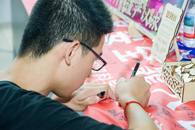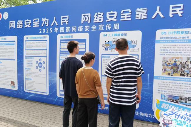 迎新正值网络安全宣传周期间,迎新现场设置签名横幅与网络安全宣传展板,新生驻足参观后,纷纷签名承诺共同筑牢网络安全防线,这也是计算机学院新生第一课的重要。
