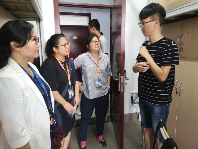 秉承学院严谨作风,迎新工作安排清晰明了,人员分工明确、各司其职。上午7时,学院迎新现场各项工作已布置妥当,迎新工作人员、本科生和研究生志愿者也已各就各位,就注册登记、材料收发、入住办理、绿色通道办理、秩序维持、疑难解答、银行卡业务等多个方面开展工作。学校和学院领导高度重视此次迎新工作,期间多次亲临现场指导工作,关心询问迎新情况,走访慰问工作人员和志愿者。