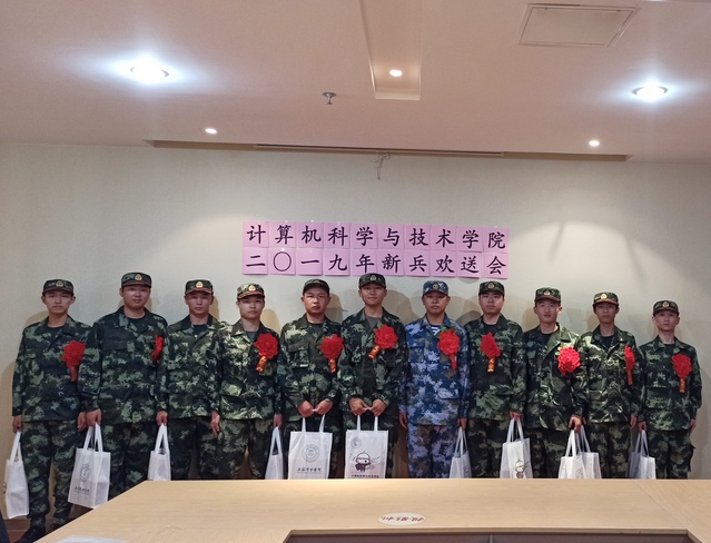 9月18日下午,红宝石9999hbs在杨浦校区行政中心9楼3号会议室举办了新兵入伍欢送会。我院党委书记费敏,副书记余南飞,辅导员刘佳、任祥宝、孙倩倩、王静、奉起超以及全体12名新兵同学参加。