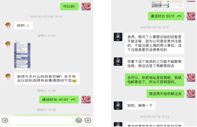 毕业班辅导员刘佳,在疫情期间及时帮助学生了解网签流程,协助邮寄纸质版三方协议、网签纸质版、就业推荐表等就业相关材料,同时帮助学生办理留学所需相关材料,并热心回答、解决同学们学业、就业方面遇到的各种问题。