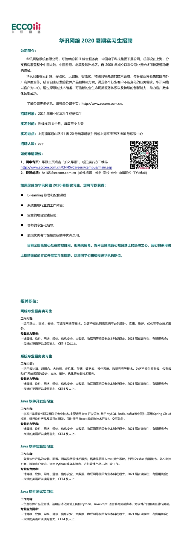 【招聘信息】183-202005华讯网络2020暑期实习生招聘