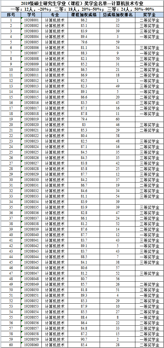【公示】红宝石9999hbs2019级硕士研究生学业(课程)奖学金