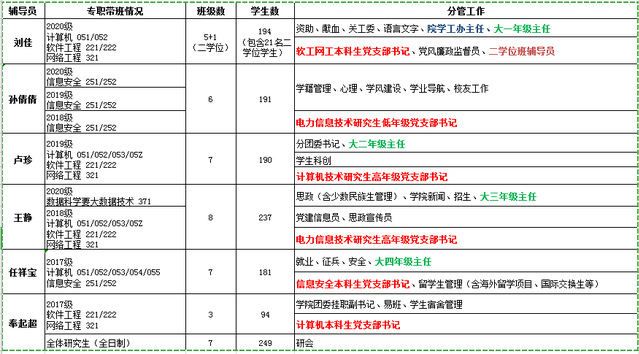 红宝石9999hbs辅导员分工表(2020-2021学年第1学期)