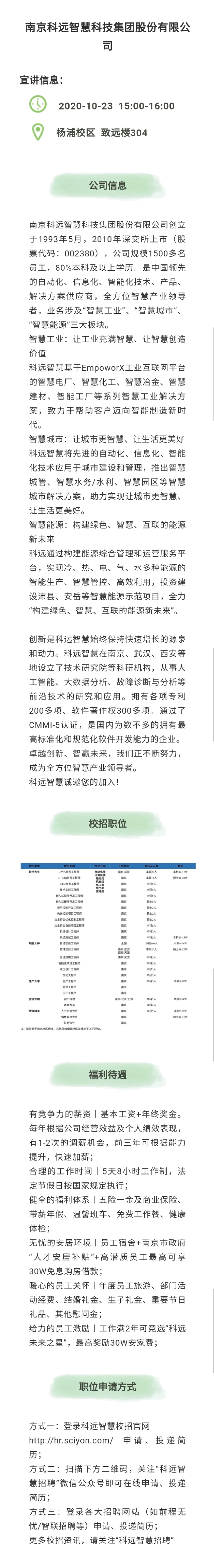 【招聘信息】212-202010南京科远智慧科技集团股份有限公司