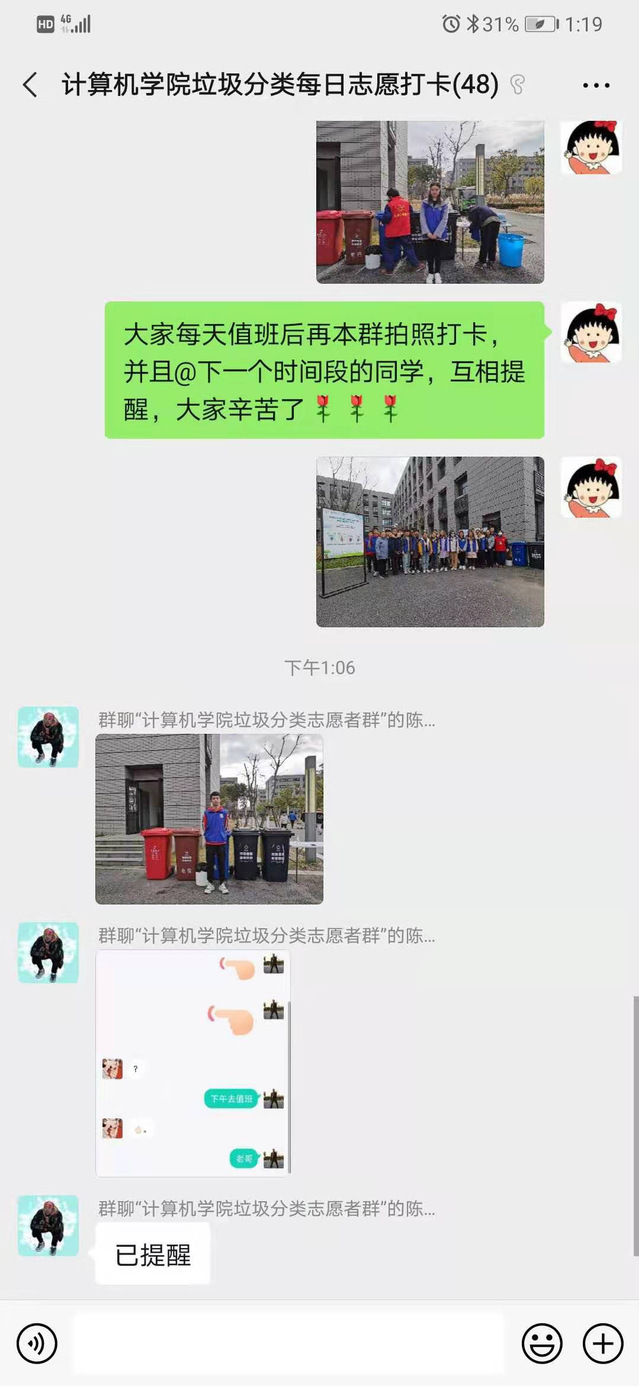 综合考虑疫情防控状态与冬季气候变化,学院团委为志愿者设计了“垃圾分类共携手”志愿服务打卡活动。同学们可以每天在微信群进行打卡,打卡活动类型有志愿服务、环保小创意等类型。倡导科学分类,共建绿色校园,学院师生将继续齐心协力做好垃圾分类志愿服务工作!
