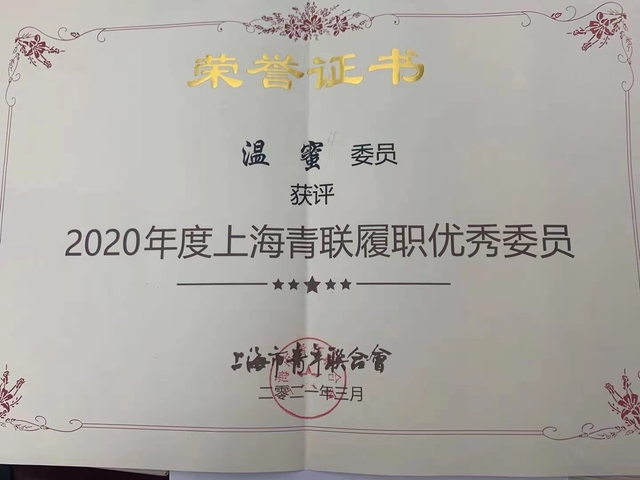 我校教师荣获2020年上海青联履职优秀委员及优秀提案奖