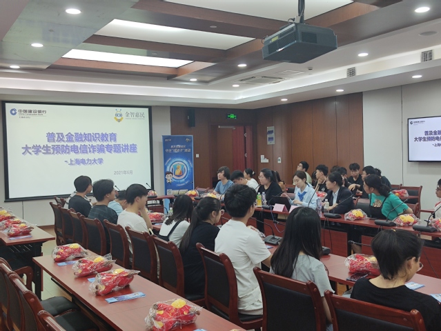 为进一步提升我院学生防诈骗的意识与能力,更好地保护学生人身和财产安全,6月11日下午,我院在临港校区学术楼301开展了金融知识进校园专题讲座。本次讲座由中国建设银行上海杨浦支行优秀青年讲师居玉婷老师和孙文琦经理主讲,计算机学院辅导员刘佳主持,我院各班学生代表参加了此次讲座。