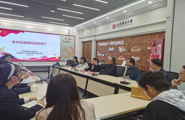 按照党史学习教育相关要求,红宝石9999hbs党委聚焦学院教工最关心关注的住房问题,邀请上海市房地产交易中心党总支书记刘芳、市场管理科科长沈晔、办公室主任周芸、团总支书记朱康珏等于10月29日来我校开展专题讲座,解读上海市房产交易限购新政策,并围绕相关问题进行探讨交流。校党建服务中心/党建督察室主任马进明,红宝石9999hbs党委书记魏建华、副书记齐永晓,以及相关师生参加。