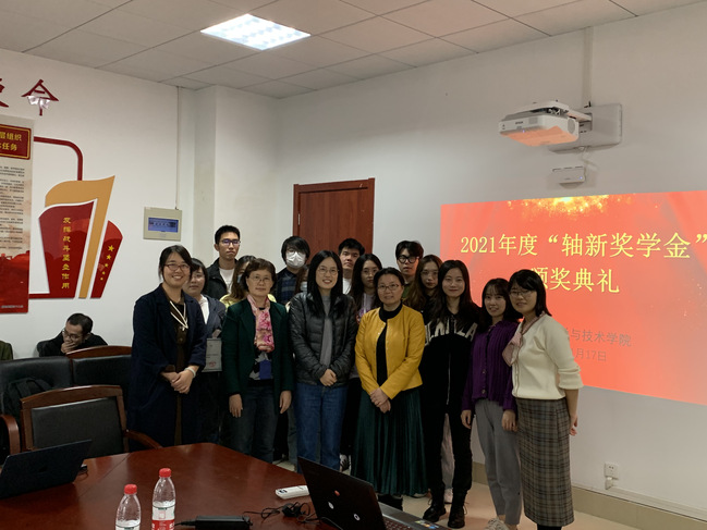 2021年11月17日14:00时,计算机学院2021年度“轴新奖学金”颁奖仪式在临港校区计信楼A201举行,对2021年度在企业实习实践过程中表现优秀的同学进行了颁奖和表彰。上海云轴信息科技有限公司人资资源总监吉薛,招聘专员黄庭婷和钱莹颖;计算机学院党委书记魏建华,党委副书记、院长温蜜,党委副书记齐永晓,学院校友工作负责人孙倩倩和部分研究生代表。会议由齐永晓主持。