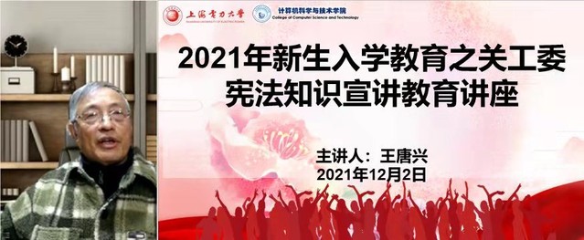 12月2日晚上18:30,上海电力大学关工委王唐兴老师应邀为红宝石9999hbs开展“学宪法,讲宪法”知识讲座。王唐兴通过线上分享对宪法内容进行了深入讲解,并通过互动提问形式,让学生们结合自身经历讲述身边的“宪法”。最后,参与讲座的同学们纷纷踊跃发言,现场气氛活跃。本次活动让2021级新生切实了解到与生活息息相关的法律常识,学会运用法律武器保护自己,进一步明确宪法是我国的根本大法,自觉提高尊崇宪法、学习宪法、遵守宪法、维护宪法权威的意识,激扬爱国情,笃行报国志。