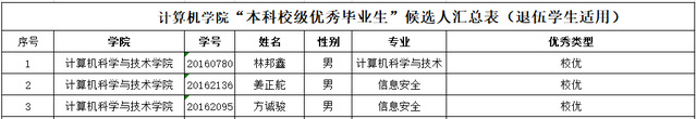 计算机学院2022届本科校级优秀毕业生补评选名单公示(退伍学生)