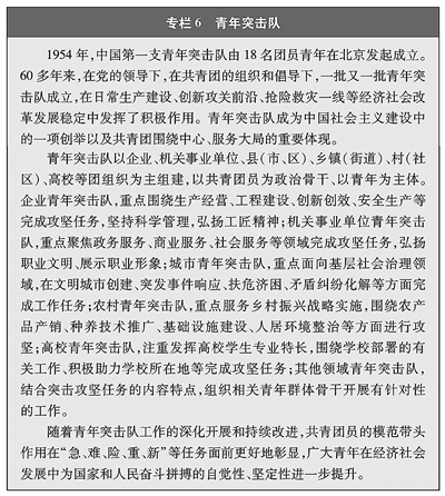 在体现综合国力、弘扬民族志气的重大工程之中,在抗击重大自然灾害面前,在应对突发公共危机时刻,青年的身影始终挺立在最前沿。无论是西气东输、西电东送、南水北调、东数西算等战略工程现场,还是港珠澳大桥、北京大兴国际机场、“华龙一号”核电机组等标志性项目工地,“青年突击队”、“青年攻坚组”的旗帜处处飘扬。新冠肺炎疫情发生以来,青年不畏艰险、冲锋在前、舍生忘死,32万余支青年突击队、550余万名青年奋战在医疗救护、交通物流、项目建设等抗疫一线,为打赢疫情防控的人民战争、总体战、阻击战作出重大贡献。援鄂医疗队2.86万名护士中,“80后”、“90后”占90%。在武汉火神山、雷神山医院建设工地上,占总数达60%的青年建设者组建13支青年突击队,靠钢铁般的意志和攻坚克难的勇气,拼搏在前、奉献在前,创造了令世人惊叹的建设奇迹,用事实证明中国青年面对困难挫折撑得住、关键时刻顶得住、风险挑战扛得住。(见专栏6)