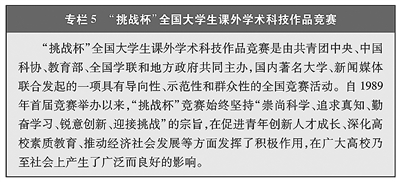受益于党和国家的好政策,在经济、社会、科技、文化等领域,青年以聪明才智贡献国家、服务人民,奋力走在创新创业创优的前列。在国家创新驱动发展战略的引领和“揭榜挂帅”、“赛马”等制度的激励推动下,一批具有国际竞争力的青年科技人才脱颖而出,在“天宫”、“蛟龙”、“天眼”、“悟空”、“墨子”、“天问”、“嫦娥”等重大科技攻关任务中担重任、挑大梁,北斗卫星团队核心人员平均年龄36岁,量子科学团队平均年龄35岁,中国天眼FAST研发团队平均年龄仅30岁。在工程技术创新一线,每年超过300万名理工科高校毕业生走出校门,为中国工程师队伍提供源源不断的有生力量,他们用扎实的学识、过硬的技术,持续创造难得的“工程师红利”,有力提升了中国的发展动力和国际竞争力。在国家持续出台创业扶持政策的大背景下,青年积极投身大众创业、万众创新热潮,踊跃参加“创青春”中国青年创新创业大赛、“中国国际互联网+”大学生创新创业大赛等创业交流展示活动,用智慧才干开创自己的事业。2014年以来,在新登记注册的市场主体中,大学生创业者超过500万人。在信息技术服务业、文化体育娱乐业、科技应用服务业等以创新创意为关键竞争力的行业中,青年占比均超过50%,一大批由青年领衔的“独角兽企业”、“瞪羚企业”喷涌而出。中国青年自觉将人生追求同国家发展进步紧密结合起来,在创新创业中展现才华、服务社会。(见图3)(见专栏7)