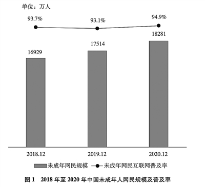 在与互联网的相互塑造中成长。互联网深刻塑造了青年,青年也深刻影响了互联网。2020年底,中国6岁至18岁未成年人网民达1.8亿,未成年人互联网普及率达94.9%,城乡普及率差距从2018年的5.4个百分点缩小至0.3个百分点,互联网已经成为当代青少年不可或缺的生活方式、成长空间、“第六感官”。随着互联网的快速普及,越来越多的青年便捷地获取信息、交流思想、交友互动、购物消费,青年的学习、生活和工作方式发生深刻改变。在网络视频(短视频)、网络直播、网约车用户中,青年都是主体。中国青年日益成为网络空间主要的信息生产者、服务消费者、技术推动者,深刻影响了互联网发展潮流。面对纷繁复杂的网络信息,中国青年在网上积极弘扬正能量、展示新风尚,共同营造清朗网络空间。(见图1)