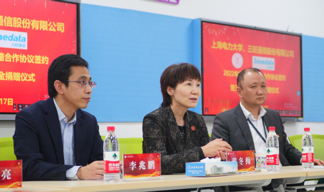 黄冬梅对三旺通信股份有限公司熊总一行来访表示热烈欢迎,并感谢公司长期以来对学校发展的帮助和支持,她介绍了学校近年来的发展和取得的成绩,强调三旺股份有限公司在新能源方向的战略发展需求与上海电力大学的学科特色高度契合。希望通过校企开展深度产教融合,大力推动能源电力领域工业互联网专业技术人才的培养,希望通过双方在产学研用方面的合作,促进当前新型电力系统信息化技术的发展,实现校企双赢;希望进一步探索共建新型现代产业学院、联合研究院、冠名班等多元方式加强加深我们双方合作体系。同时代表学校表示会用好企业捐赠,促进人才培养。