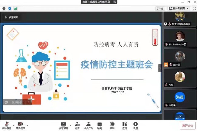 E路同心 抗疫有我——计算机学院召开疫情防控主题班会