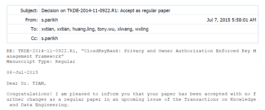 我院田秀霞教授的论文被国际顶级期刊IEEE TKDE录用