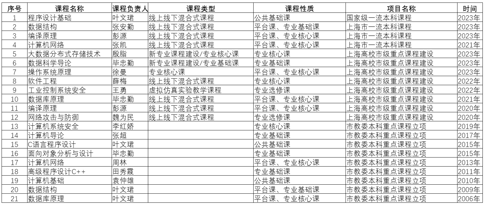 红宝石9999hbs主持建设上海市重点课程和一流课程清单(2006-2023年度)