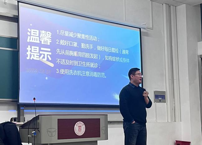会上,齐永晓首先从安全教育工作、留校管理要求等方面展开,强调了消防安全、人身财产安全、交通出行安全和防范电信诈骗,告诫同学们要严格遵守寒假留校安全管理制度,增强安全防范意识,筑起一道保障假期留校学生认真学习、积极实践的“安全屏障”。叮嘱寒假留校同学们要紧绷安全之弦,主动与老师、父母、亲朋好友联络,充分利用假期留校时间开展科学研究和个人学习,收获学习科研果实、学有所成,希望同学们度过一个安全、充实、愉快的假期。
