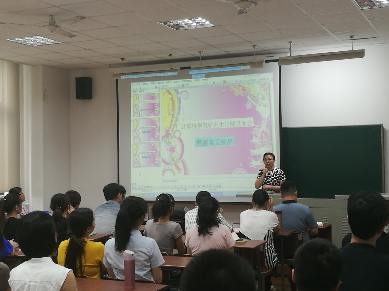 我院2017级研究生导师见面会于9月19日下午3点在杨浦校区明理楼208教室隆重召开。计算机学院党委书记费敏老师,院长温蜜老师,副院长毕忠勤老师,党委副书记余南飞老师以及副院长张挺老师和部分研究生导师、全体研究生新生出席了本次大会。大会由张挺老师主持。