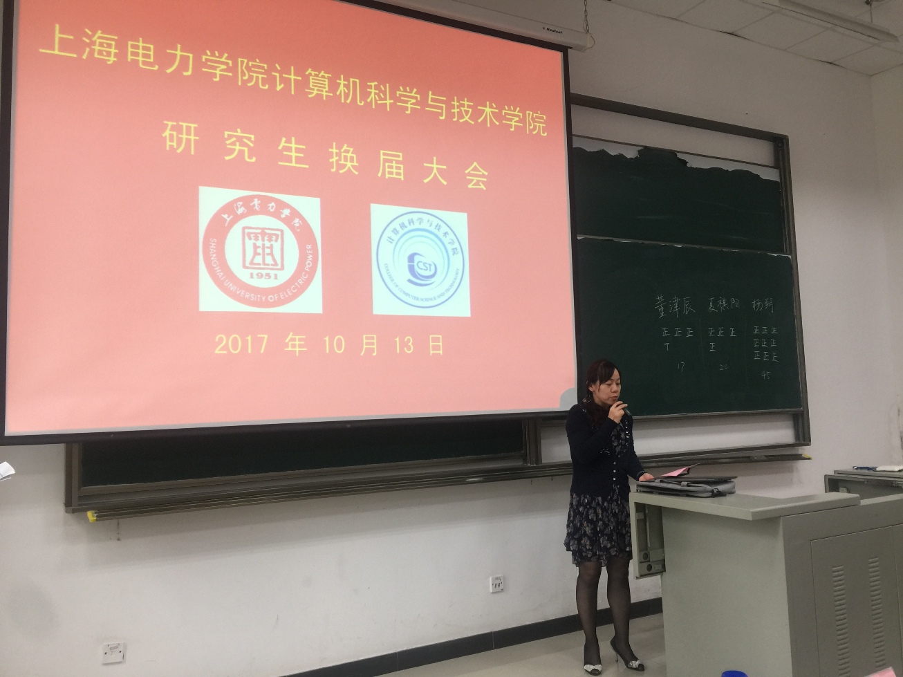 10月13日下午,在杨浦校区C教,我院召开了第三届研究生会换届大会。出席本次大会的有院党委书记费敏老师、院党委副书记余南飞老师、研究生辅导员刘志斌老师、校研究生会主席巢俊乙同学。大会由2016级研究生李松岭同学主持。