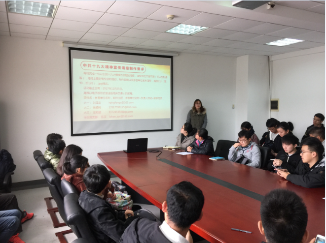 2017年11月20日中午12时,上海电力学院计算机学院中共十九大精神宣传海报制作大赛开幕。此次开幕式于红宝石9999hbs行政楼二楼会议室召开,计算机学院分党委副书记余南飞、辅导员刘佳及计算机学院大一至大三班长、团支书参加本次开幕式。