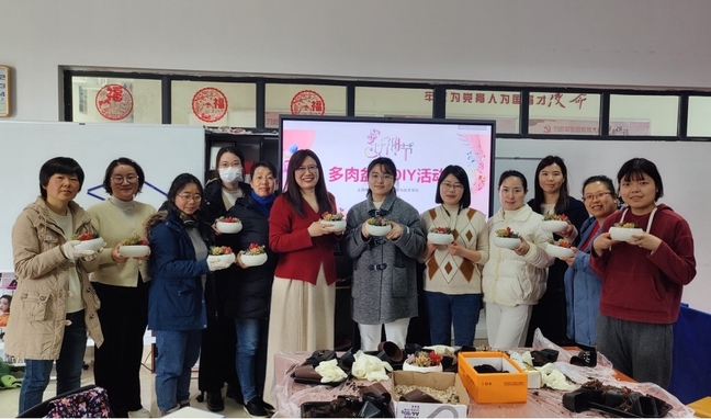 活动现场的氛围欢快融洽,女教师们在学习多肉种植和养护知识后开始自己创作,取出多肉、定位、铺石、填土,尽情的发挥自己的想象力,设计独一无二、专属的多肉小盆栽。活动过程中,大家可以暂时的从繁忙的工作中抽离,放松身心,感受浓浓的春意。