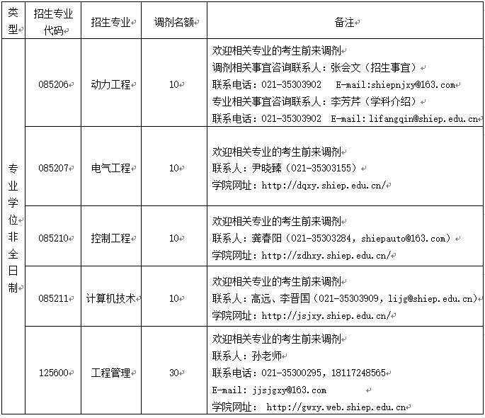 【非全调剂】上海电力学院2018年非全日制硕士研究生招生最新调剂信息