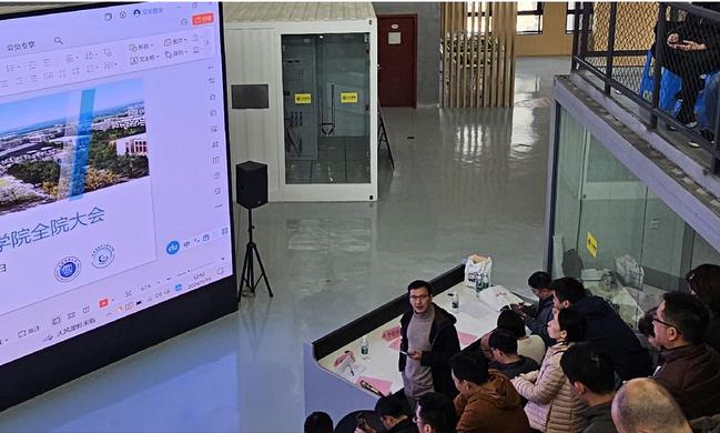 2024年3月19日,计算机学院在临港校区能源电力科创中心召开全院大会暨书记讲堂,学院党政班子及全体教职工参加,会议由院长温蜜主持。