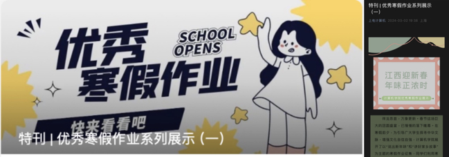 此外,学院还通过“上电计算机”公众号,对优秀寒假作业进行展示,进一步发挥榜样模范引领作用,激发学生创作活力与参与热情。