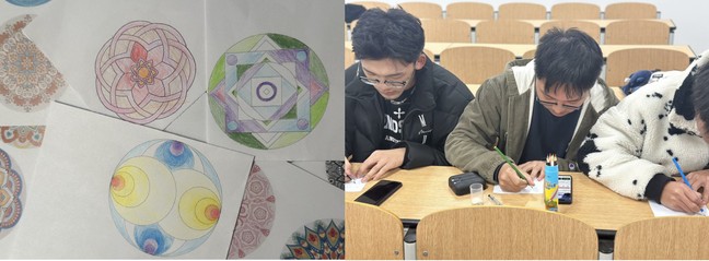 学院组织曼陀罗绘画团体心理活动,同学们跟随自己内心的感觉挥动画笔在曼陀罗图形上着色,将所思所想倾注在画的图形中,不断探索内心世界。活动结束后,同学们纷纷反馈,在绘画过程中,凝聚了心理能量、增强了内心的秩序感,激活了内在能量,助力了心灵成长。