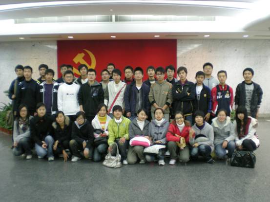 12月8日,计信学院2008142班开展了以“党的印象――回首一大”为主题的团日活动。此次活动是同学们入学以来的第一次大型参观活动。在参观过程中,大家共同见证了中华民族成长的历史,也见证了伟大的中国共产党诞生的历史,大家感触很多。党的历史激励着同学们,坚定理想信念,更加努力地学习工作。参观结束后,同学们都表示要提高自身修养,积极向党靠拢,学习和发扬为人民服务的精神,脚踏实地,以良好的精神风貌迎接世博会。