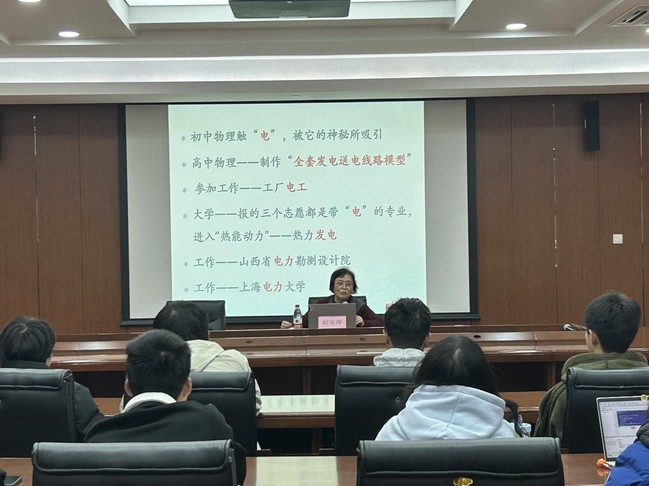 在讲座中,赵宪萍教授从自我经历谈起,初中物理课堂上接触到“电”,因此与“电”结下不解之缘;从高中制作全套发电送电模型,到进入电厂成为第一个女电工,再到参加恢复高考后的第一届高考,顺利考取热能动力专业,最后在上海电力大学任职教师;赵宪萍教授用自己的成长故事讲述了自己一辈子的电力情缘,并希望同学们坚持自己的热爱,坚定地走好自己的路。
