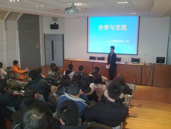 3月3日下午,我院2007级通信工程专业同学在第二综合楼308召开了主题班会。会议以“分享与交流”为主题,由同学们自己讲述寒假生活,分享自己在假期中社会实践的情况,并畅谈自己的所见所闻;还有一些同学交流了科创项目的申报过程及考取英语、计算机等证书的相关经验。