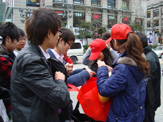 3月7日,计信学院2008073团支部在上海世博展示中心组织开展了“世博,让我们心连心”的系列团日活动。同学们在淮海路上联合上海市爱心志愿者们进行募捐活动;参观了“梦幻的演绎――上海世博会”以及“岁月的印痕――世博会历史漫步”的多媒体影视等多项专栏与展板。