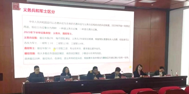 为强化学生国防观念,号召适龄大学生参军入伍,切实做好2023年度征兵工作,计算机学院组织开展了征兵宣讲季系列活动,包括政策宣讲、榜样引领、专题座谈等。