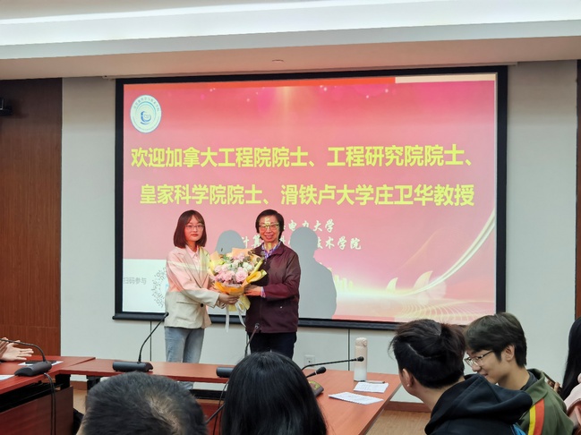 庄院士的报告丰富了师生们对智能物联网应用与前言研究问题的认识,交流环节的互动更是激发了师生们对边缘计算和深度神经网络推理问题的兴趣和思考。会后学生代表钱雨薇同学为庄院士献花并全体合影留念,感谢庄院士带来的精彩讲座。