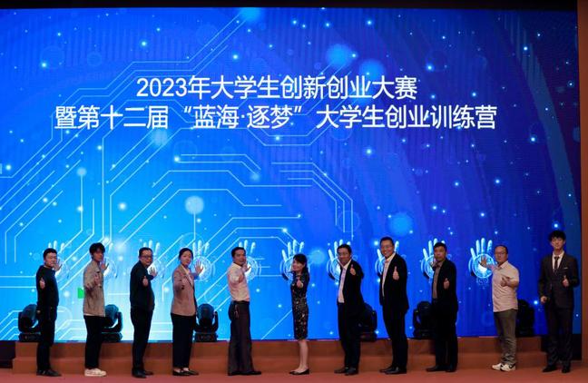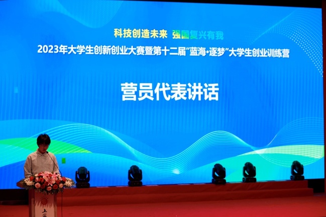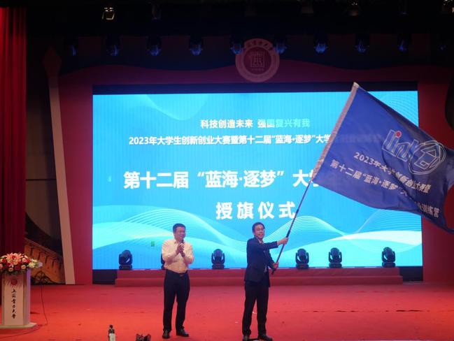 与此同时,第十二届“蓝海·逐梦”大学生创业训练营也在本次活动中同步启动,由饶应福授训练营营旗、我校校办主任李兆鹏代表我校接旗。营员代表来自我校计算机学院的孙圣杰同学发言,他谈到训练营的启动激发青年学生的创新创业激情,并表示要主动作为、积极参与走好新时代大学生的科创路。