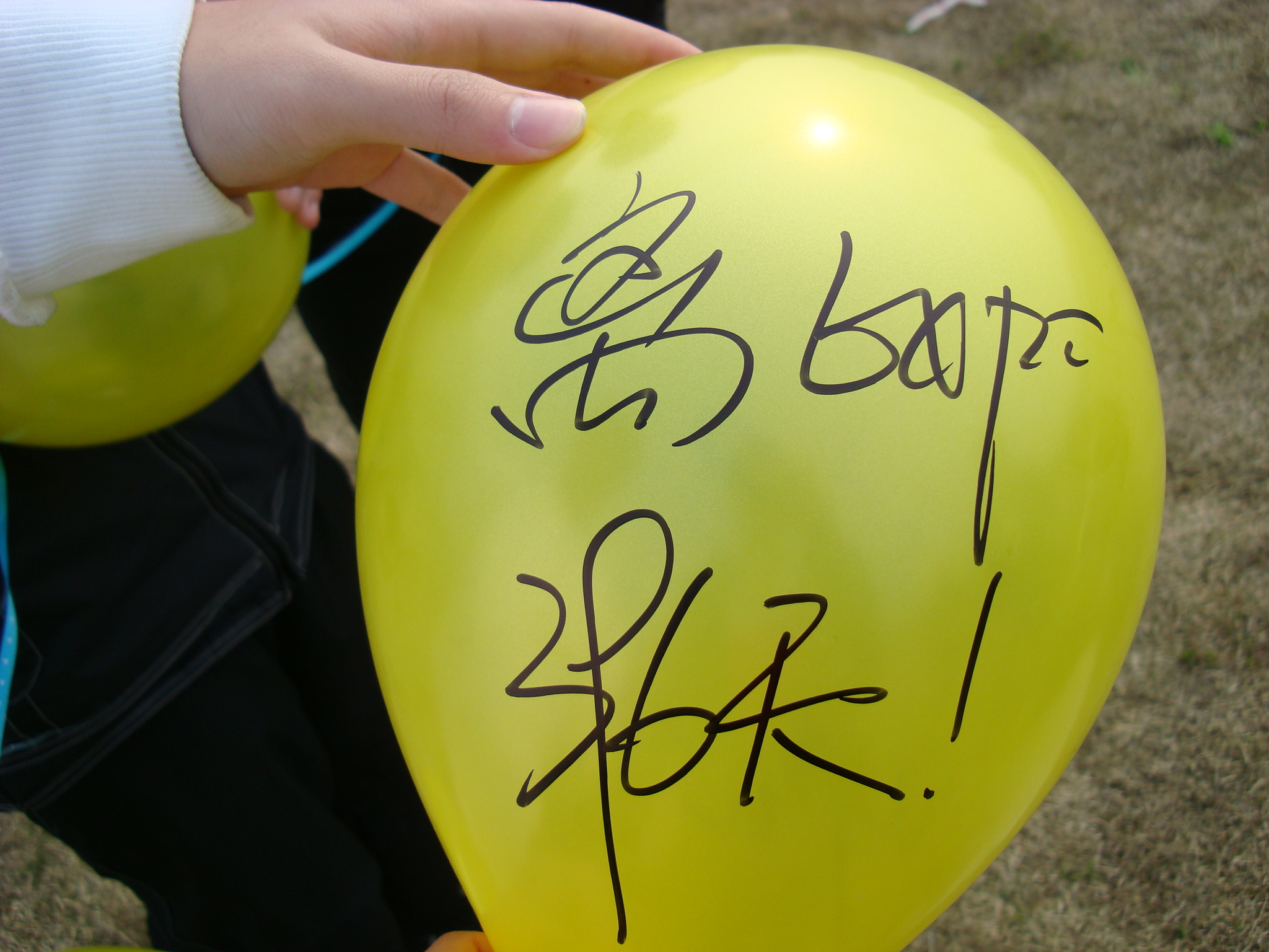 3月31日 我院2008073团支部在南汇校区草坪开展了“世博,让我们心连心”主题团日活动之二“为世博加油”。其间,同学们围成一圈,畅谈对世博的展望与期待。大家将自己对世博的祝福写在气球上将其放飞,共同制作了一个“愿望谱”为世博加油打气。最后,同学们在"丢手绢":和"拷贝不走样"的游戏中结束此次活动。
