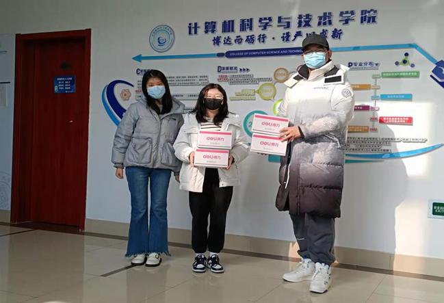 计算机学院党政班子、辅导员、学生代表等通过录制考研祝福视频为他们送上关怀与祝福,希望同学们坚定目标,放平心态,让内心的梦想化为自己的前进动力,希望同学们调整好自己的心态,劳逸结合,做好防护,科学备考,期待计科学子金榜题名。辅导员张潇月、周远航代表学院把“金榜题名”文具套装送到学生手中,希望计科考研学子以笔为刀、以墨为锋,带着学院的这份温暖笔下生花,一“研”为定,一战成“硕”,“研”途璀璨!