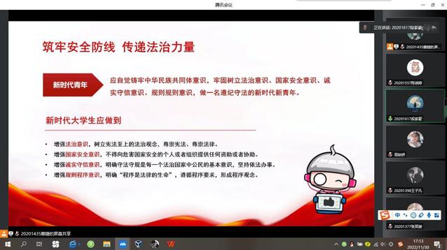 此次Z世代系列班会的顺利开展,有助于引导学生更加深入地学习贯彻习近平法治思想,进一步培养、增强学生的宪法意识和法治素养,激励学生坚定学法、懂法、守法、用法的信心与决心,厚植爱党、爱国、爱社会主义的情感,以法治担当展现“Z世代”的青春作为。