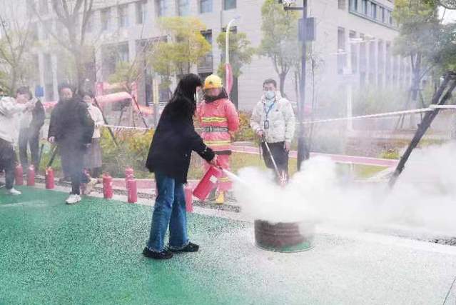 随后,学校消防专员结合典型火灾事故,详细讲解了火灾的危害性,现场为师生们传授火场如何逃生等消防基础常识,实地演示了灭火器操作使用方法,并现场邀请师生参与使用灭火器。