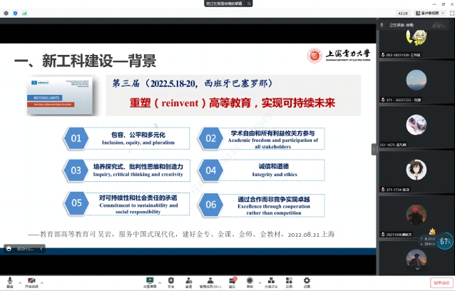 徐曼老师从学院教学角度详细介绍了新工科建设的背景和改革方向以及工程教育专业认证OBE核心理念,鼓励学生树立学业目标,制定学业规划;重视学习过程,适应过程化考核;加强生生互动、师生互动,适应线上学习扬长避短;加强实践,积极参加创新创业活动,将自己培养成为优秀工程人才。