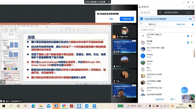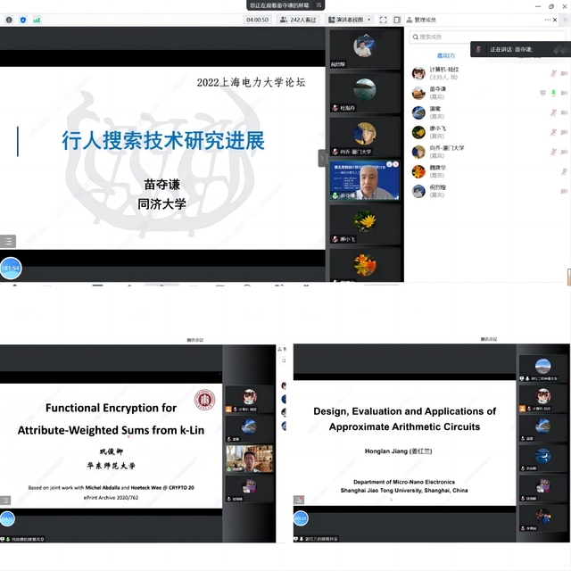 会议专题报告环节,会议邀请了杭州师范大学陈克非教授,国家“万人计划”科技创新领军人才、科技部中青年创新领军人才、北京理工大学网络空间安全学院党委书记祝烈煌教授,上海市曙光学者、上海市人才发展基金获得者、华东师范大学钱海峰研究员作为主持嘉宾。国家杰出青年基金获得者、中组部“万人计划”科技创新领军人才、华中科技大学廖小飞教授讲述了大数据关联处理的主要形式,以及图计算的相关挑战与研究实践。华中科技大学人工智能与自动化学院副院长、华中卓越学者周纯杰教授介绍了工业信息物理系统的信息安全防护以及其技术路线和解决思路。上海市优秀学术带头人、人工智能全球女性学者、 福布斯中国科技女性、复旦大学黄萱菁教授介绍了基于神经网络的语言表示学习方法,并从模型、学习等层面讨论神经语言表示学习的近期研究趋势。厦门大学向乔教授讨论了网络应用集成(NAI)推动智能城市的发展,介绍了在这一领域的最新设计和经验,并从NAI的角度讨论推动智慧城市发展的未来挑战和机遇。IRSS /CAAI Fellow、2022全球前2%顶尖科学家榜单入选者、同济大学苗夺谦教授介绍了采用粒计算思想提出的一种序贯端到端网络——SeqNet,并作为新的SOTA,成为后来研究者超越的目标。华东师范大学巩俊卿研究员介绍了新型功能加密体制的定义和构造方法,并给出了基于可证明安全理论的证明技术分析。上海交通大学姜红兰副教授介绍了近似计算电路的设计方法、精度及电路的评价方法、以及遇到的问题进行简要的介绍,对现有众多近似计算电路进行概括性的介绍、对比和分析,并讨论近似计算在图像处理及深度学习中的精度损失及硬件收益。