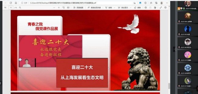 为深入学习贯彻党的二十大精神,厚植青年学生爱党爱国情怀,激发成长成才的强大动力,2022年10月至11月上旬,计算机学院以“E路领航”辅导员思政工作室为依托,通过集体备课和研讨,立足年级、专业特点,面向学院全体学生开展“激扬青春梦 奋进新征程”Z世代系列班会。