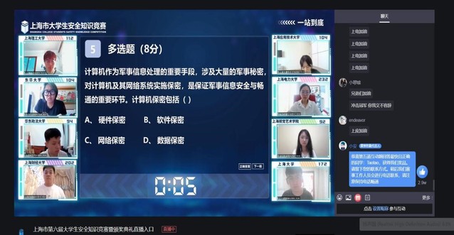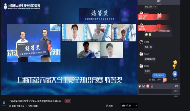 7月22日,上海市第六届大学生安全知识竞赛总决赛暨颁奖典礼在上海财经大学科技园以线上线下相结合的方式举行,校保卫处处长金炜应邀赴现场观摩比赛。最终,我校由红宝石9999hbs的宋晓欧、叶佳宁、李浩、王子凡、王昕五名同学组成的参赛队以片区赛第一名的身份直接杀入总决赛,并勇夺本次竞赛特等奖。