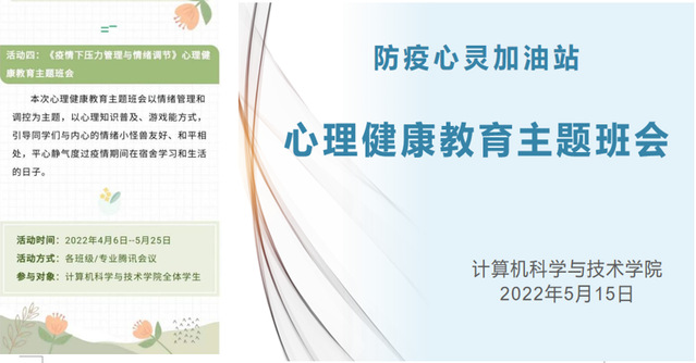 学院通过腾讯会议平台在本科生和研究生中开展多场线上心理健康教育主题班会。会上,各位辅导员以心理知识讲解,案例分析、影视欣赏、分组讨论等形式极大缓解了疫情带给同学们的心理压力,帮助同学们正确看待疫情带来的心理波动,引导同学们增强自我情绪调控、提高心理承受挫折能力。