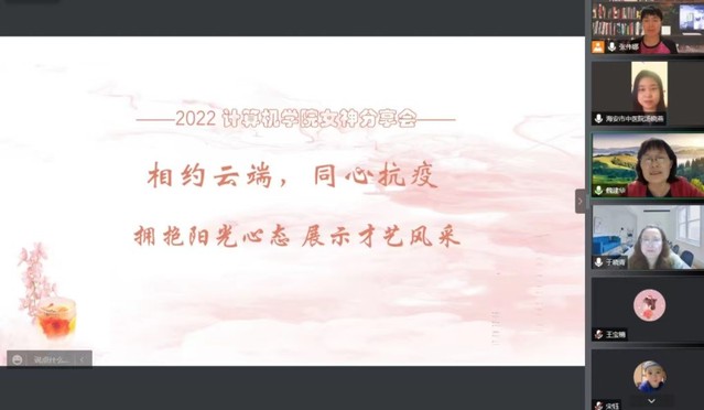 新冠病毒的再次变异和快速传播扰乱了我们的日常生活也改变了我们的工作方式。为了提升女教师的防疫抗疫能力、缓解居家隔离压力, 4月26日晚7点,计算机学院工会组织女教师们开展了以“相约云端,同心抗疫”为主题的分享、交流活动。鼓励大家拥抱阳光心态,展示女性风采,丰富居家隔离生活。